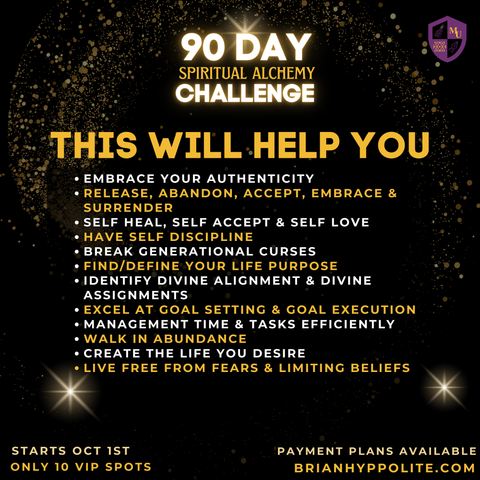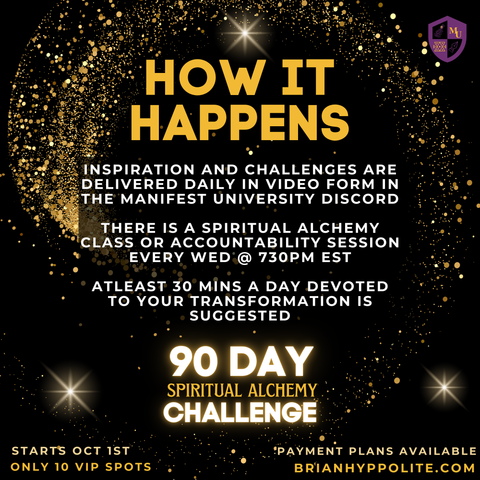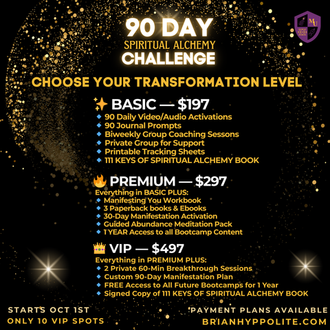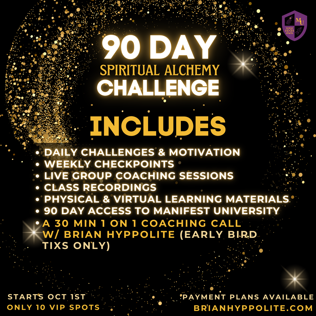 Beginning October 1st, youβll join a guided 90-day journey of spiritual alchemy, personal discipline, and deep transformation designed by Brian Hyppolite, The Manifest Mentor.