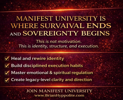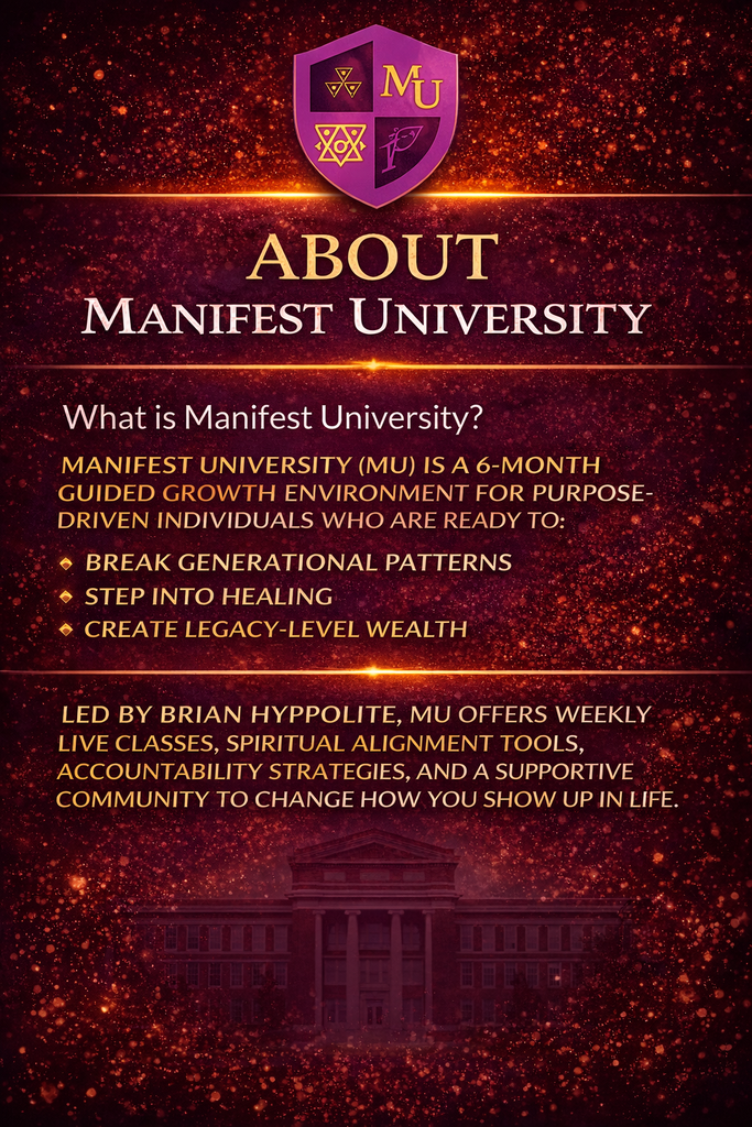 Led by Brian Hyppolite, The Manifest Mentor, author, teacher, and architect of generational healing systems, MU gives you the tools, structure, and support to move from survival mode to sovereign living.